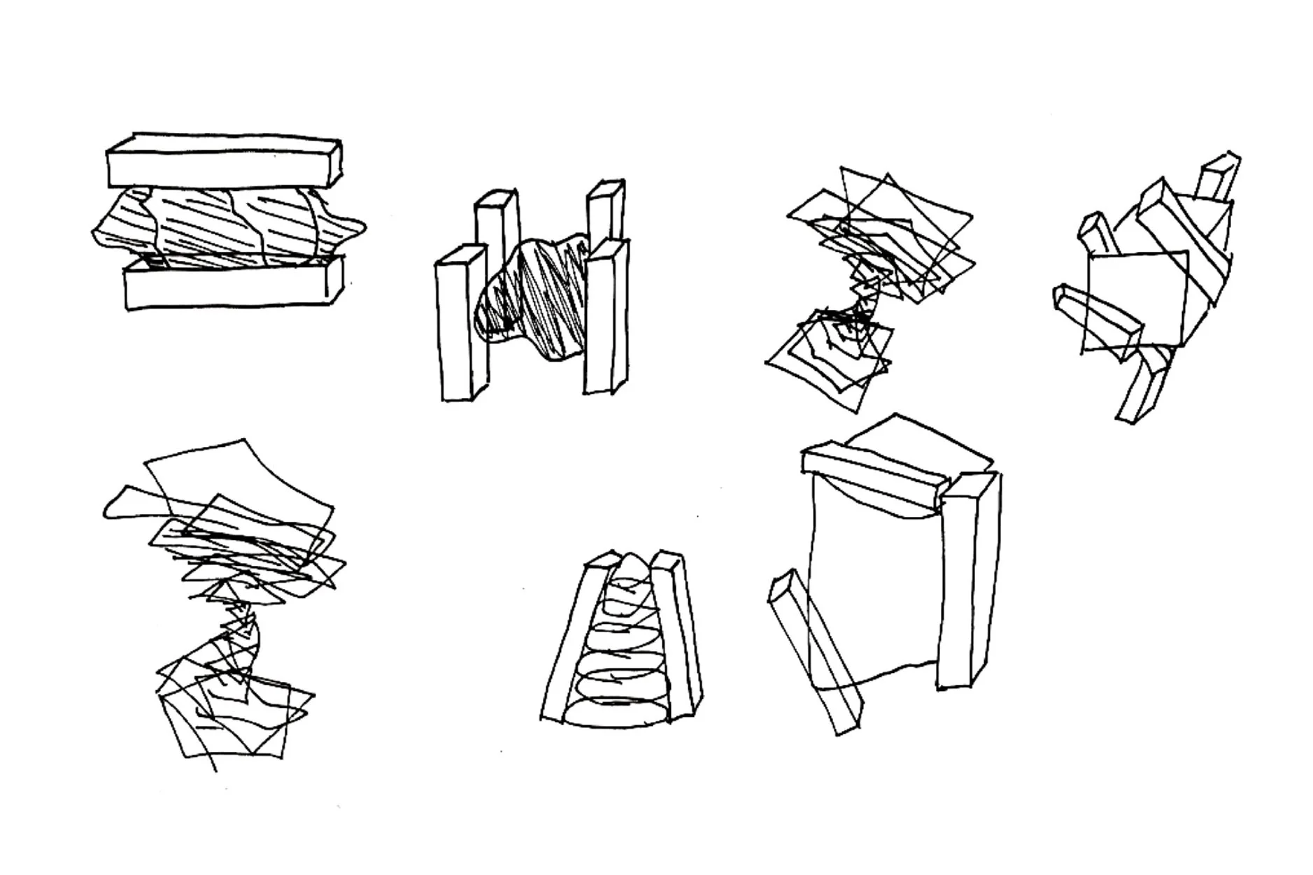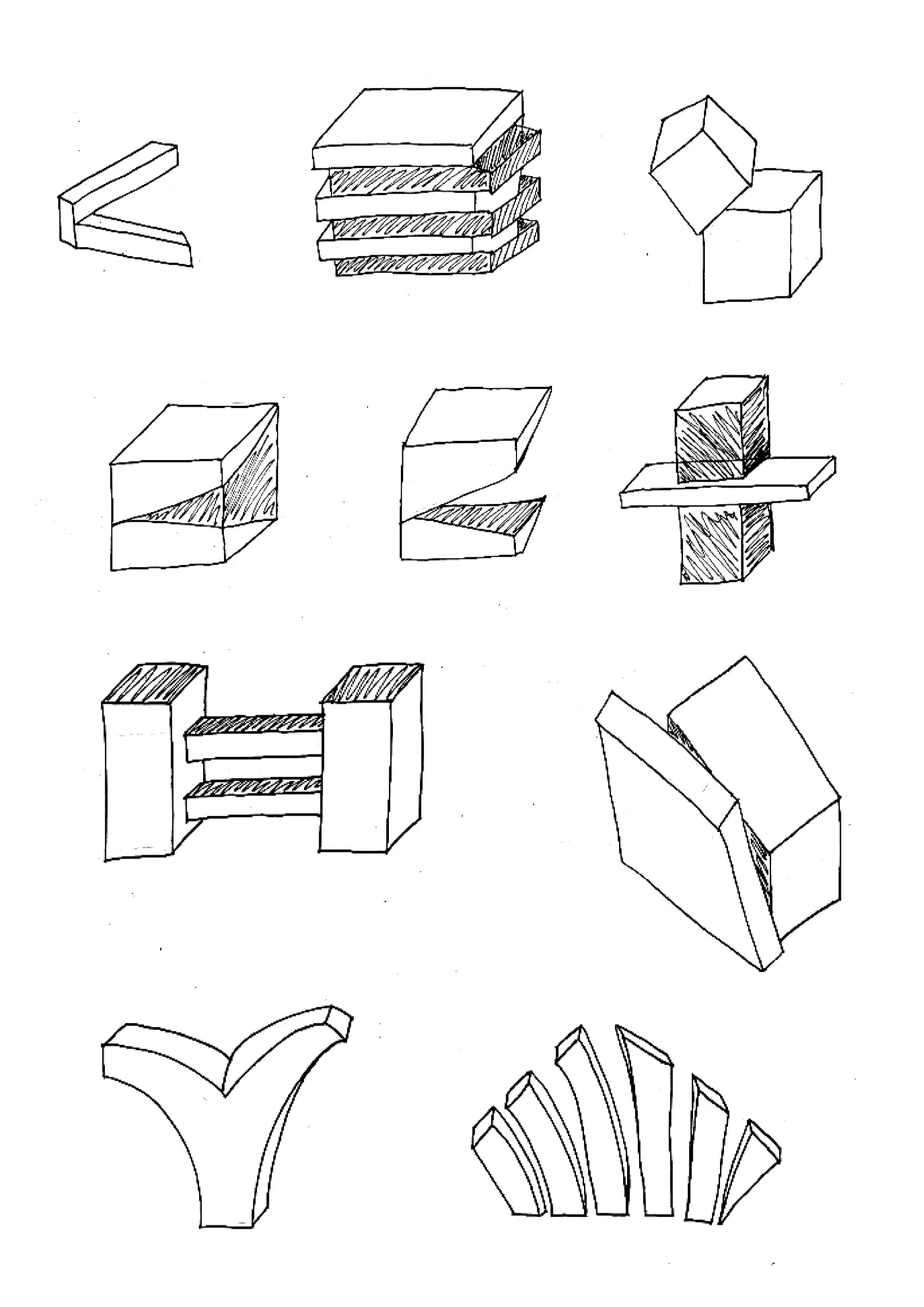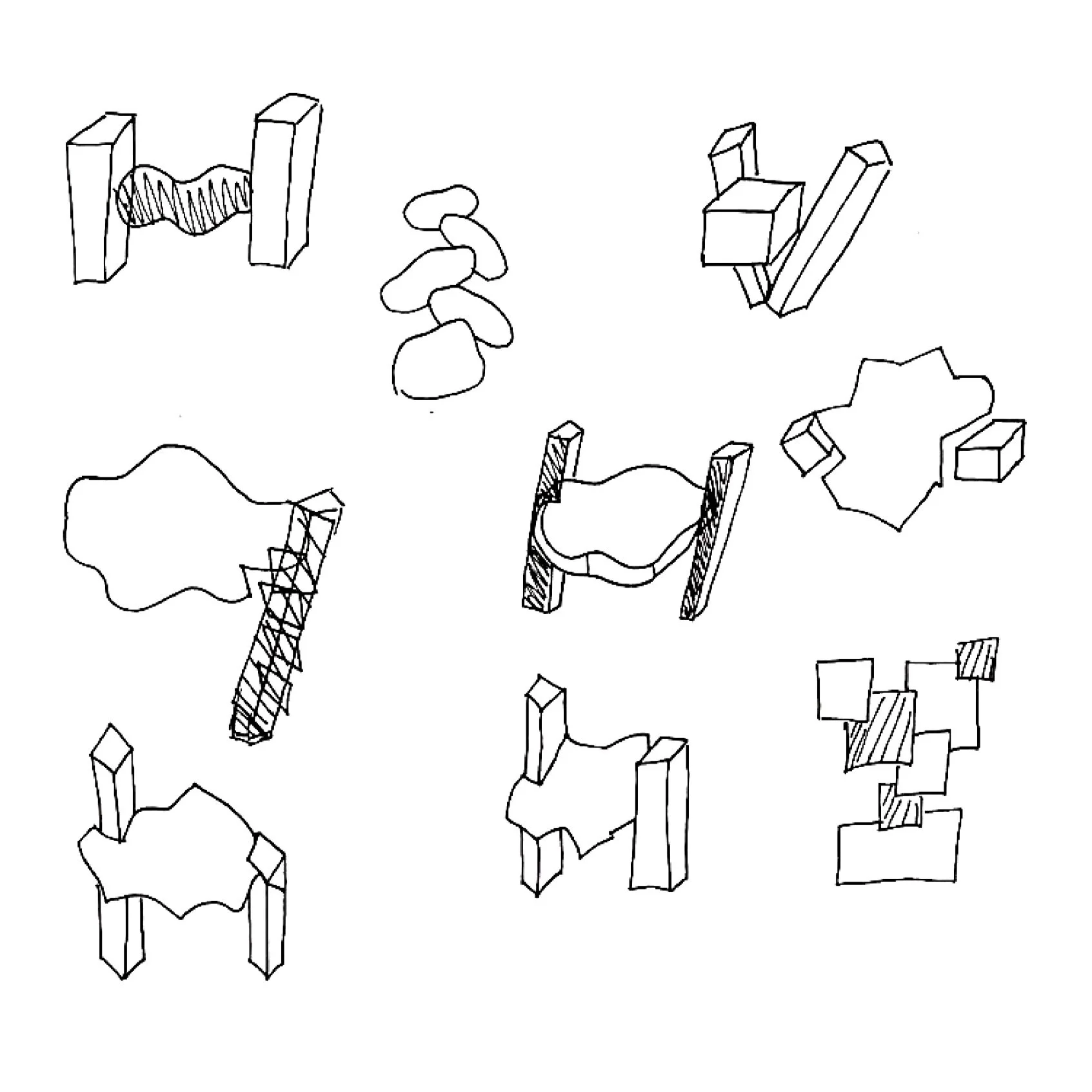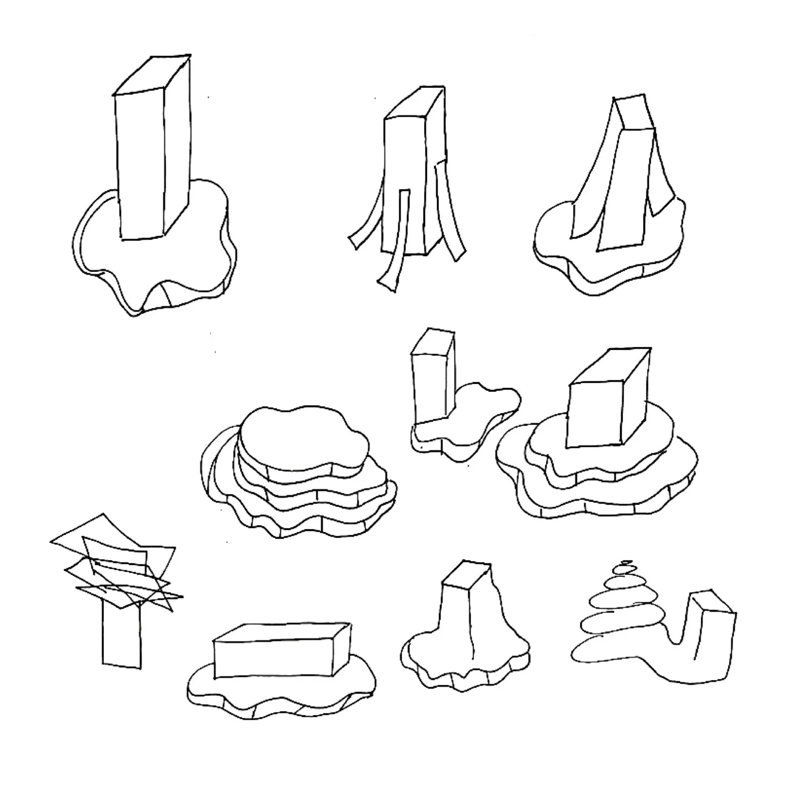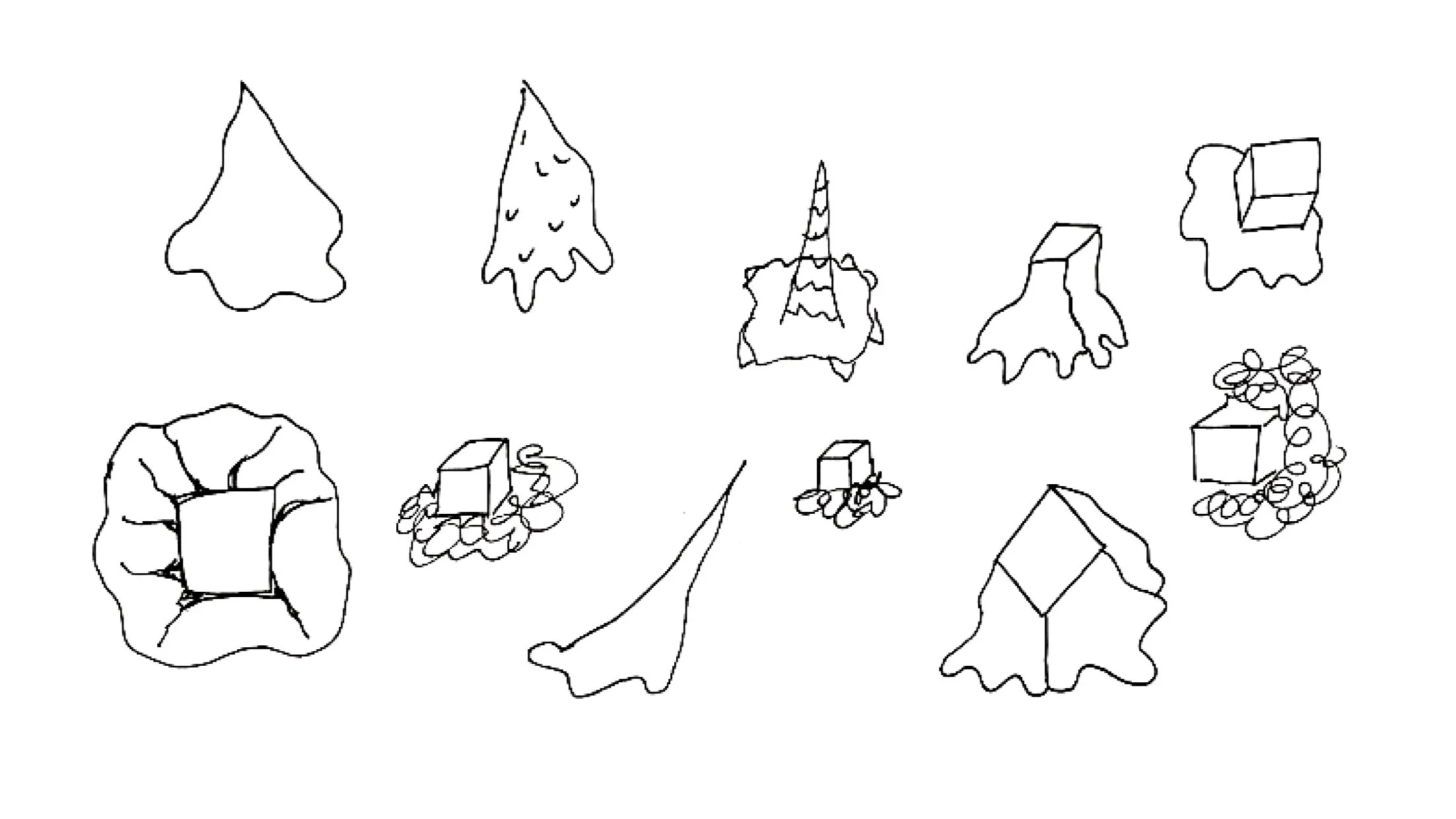These sketches and models are focused individually on representing the specific descriptor words: split, squeezed, & dissolved